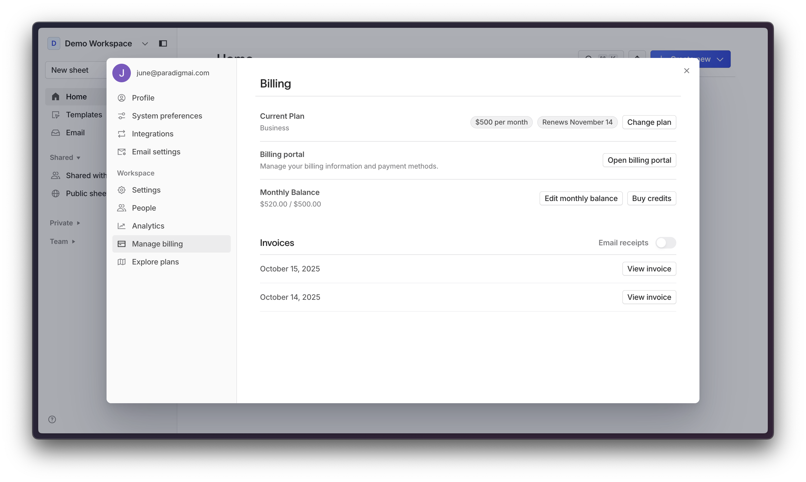 Manage your billing from the billing portal.