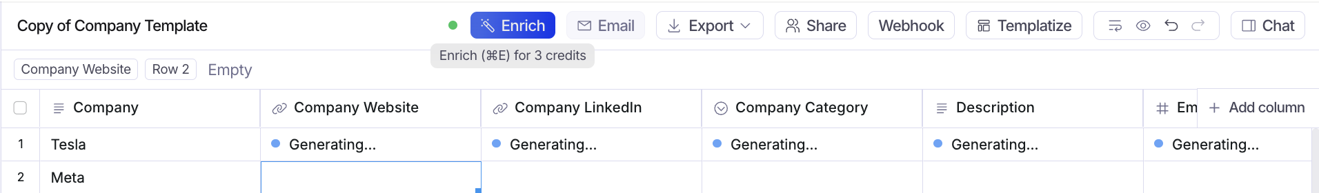Enriching 13 cells for ~8 credits by enriching the entire row.