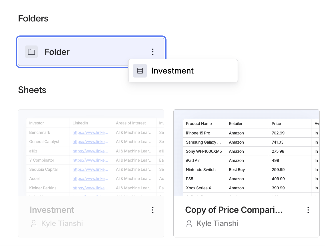 Drag and drop to organize your sheets.