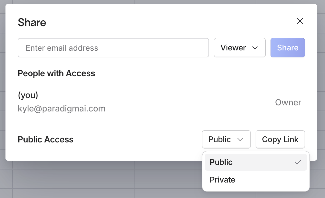 button to copy the link to the shared sheet. All public sheets are viewable in Public sheets
