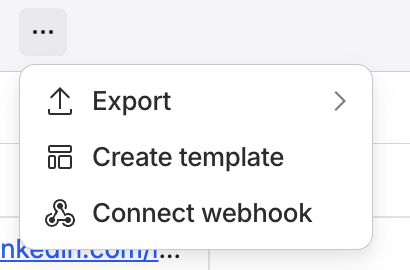 Input webhooks allow you to pull live data into your sheets from any webhook-compatible source and automatically export enriched data rows. For example, internally, we set them up to auto-enrich our incoming waitlist from our database and our recruiting candidates from our application tracking system. When Paradigm receives data, our agent first analyzes it and extracts all relevant information to match the columns you set up. Then, Paradigm automatically enriches any missing information in the added row. An input webhook can process and add only one row per request. Data format is flexible. To set up an input webhook, create a new sheet and add the columns you want to extract data into. Then, click the three dots next to the title of your sheet and clickConnect webhook.