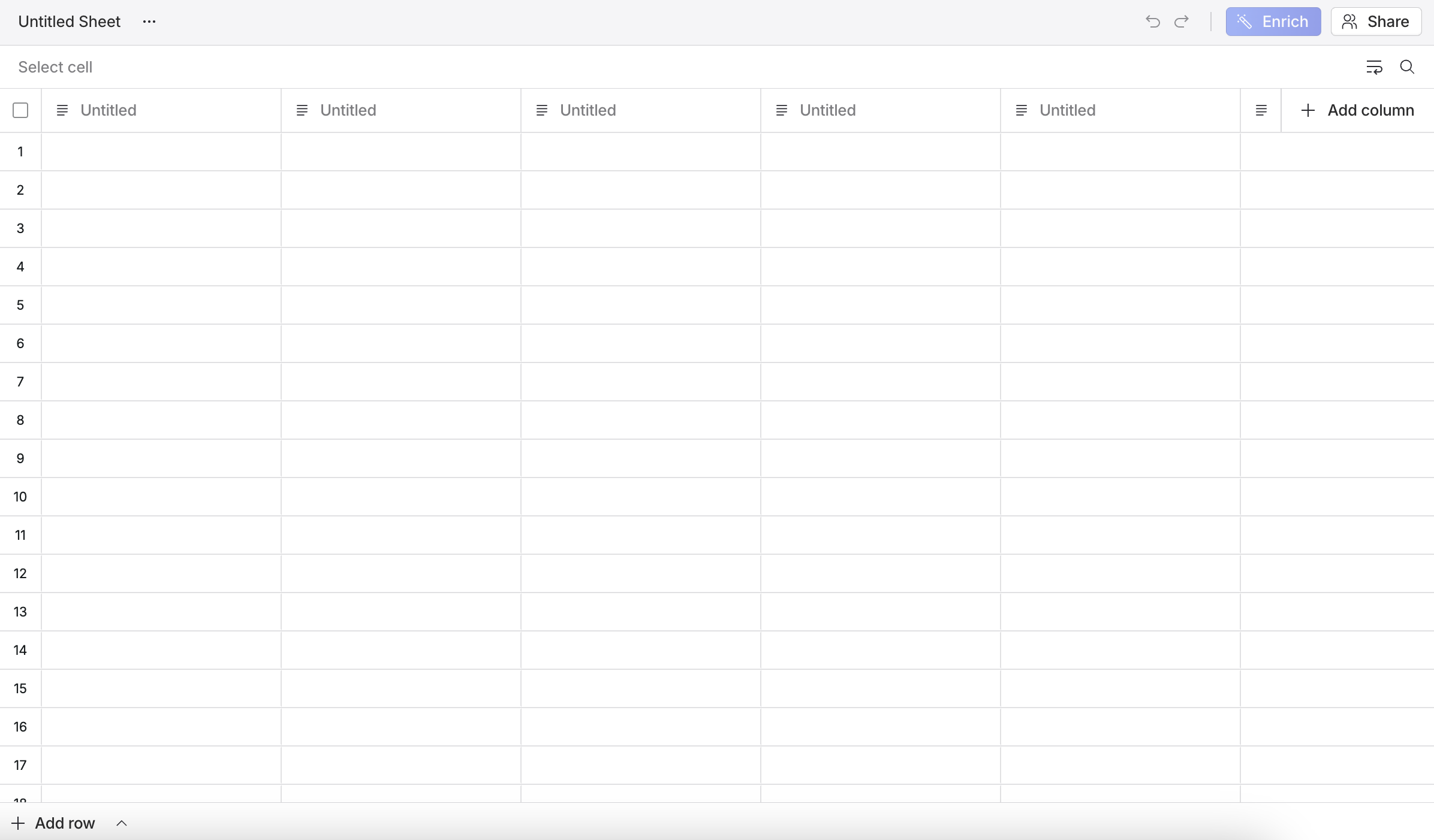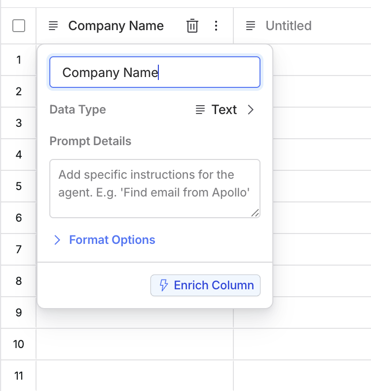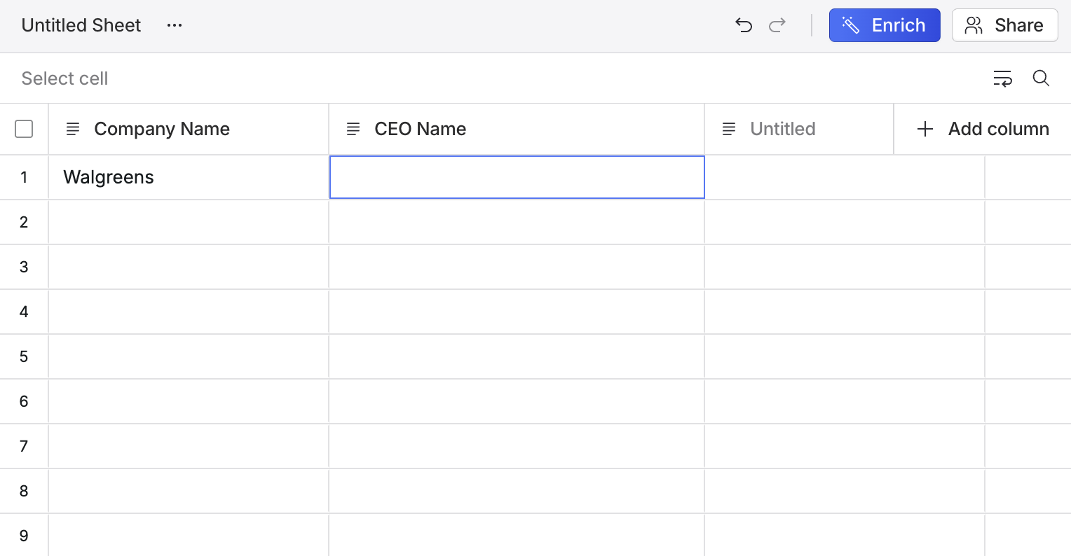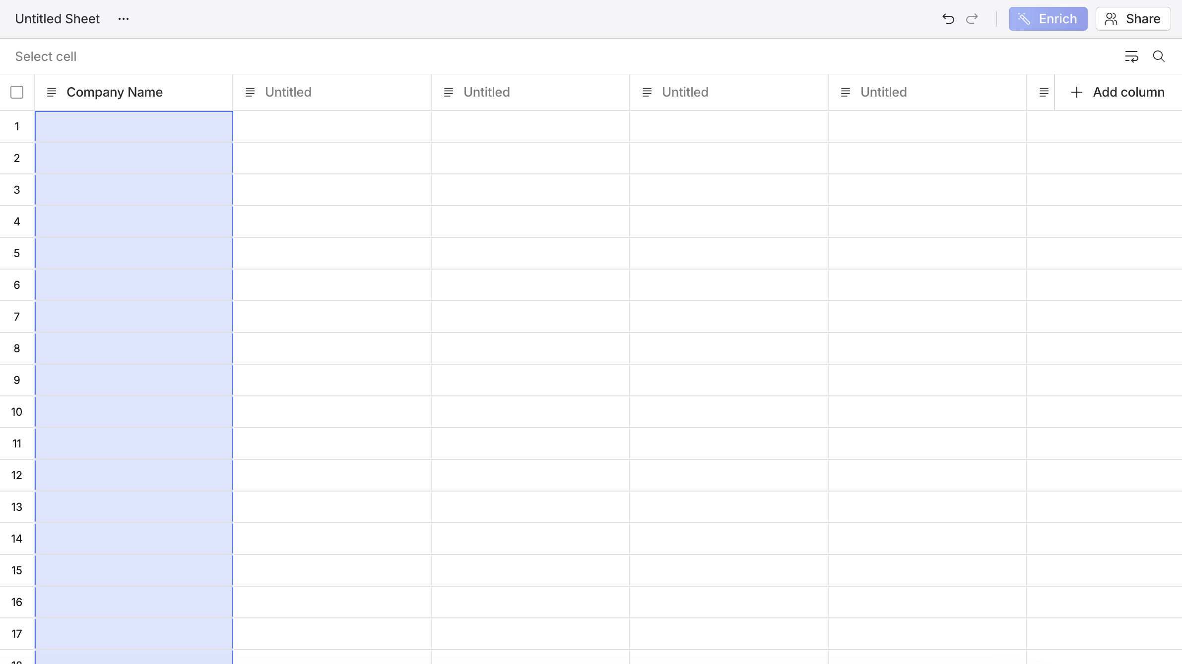 Select the top row of an empty column to add a column title.